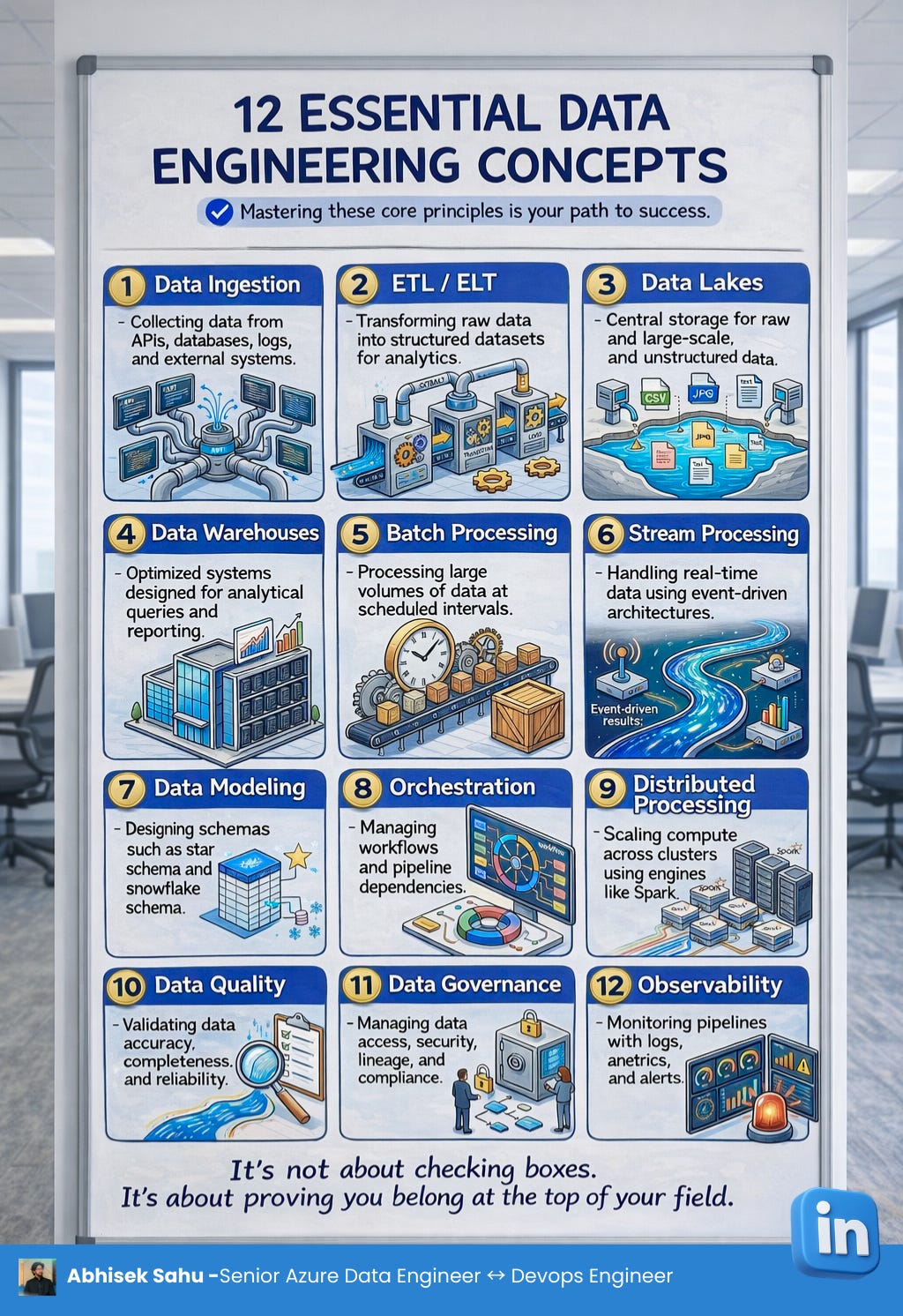 If you’re building data pipelines, platforms, or analytics systems, here are 12 data engineering concepts worth understanding: